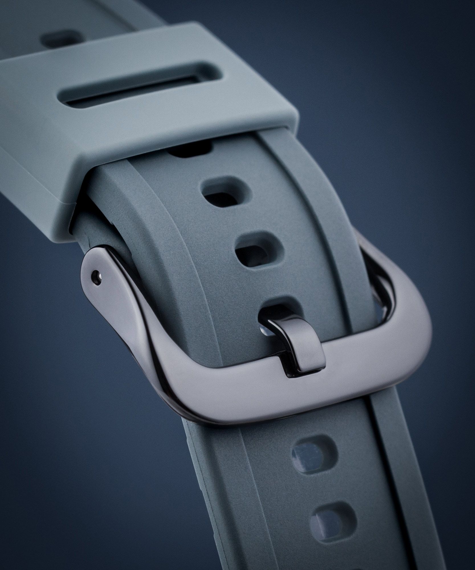 • Pasek/Bransoleta: Pasek z tworzywa (resin), szary z niebieskimi elementami, wentylowany