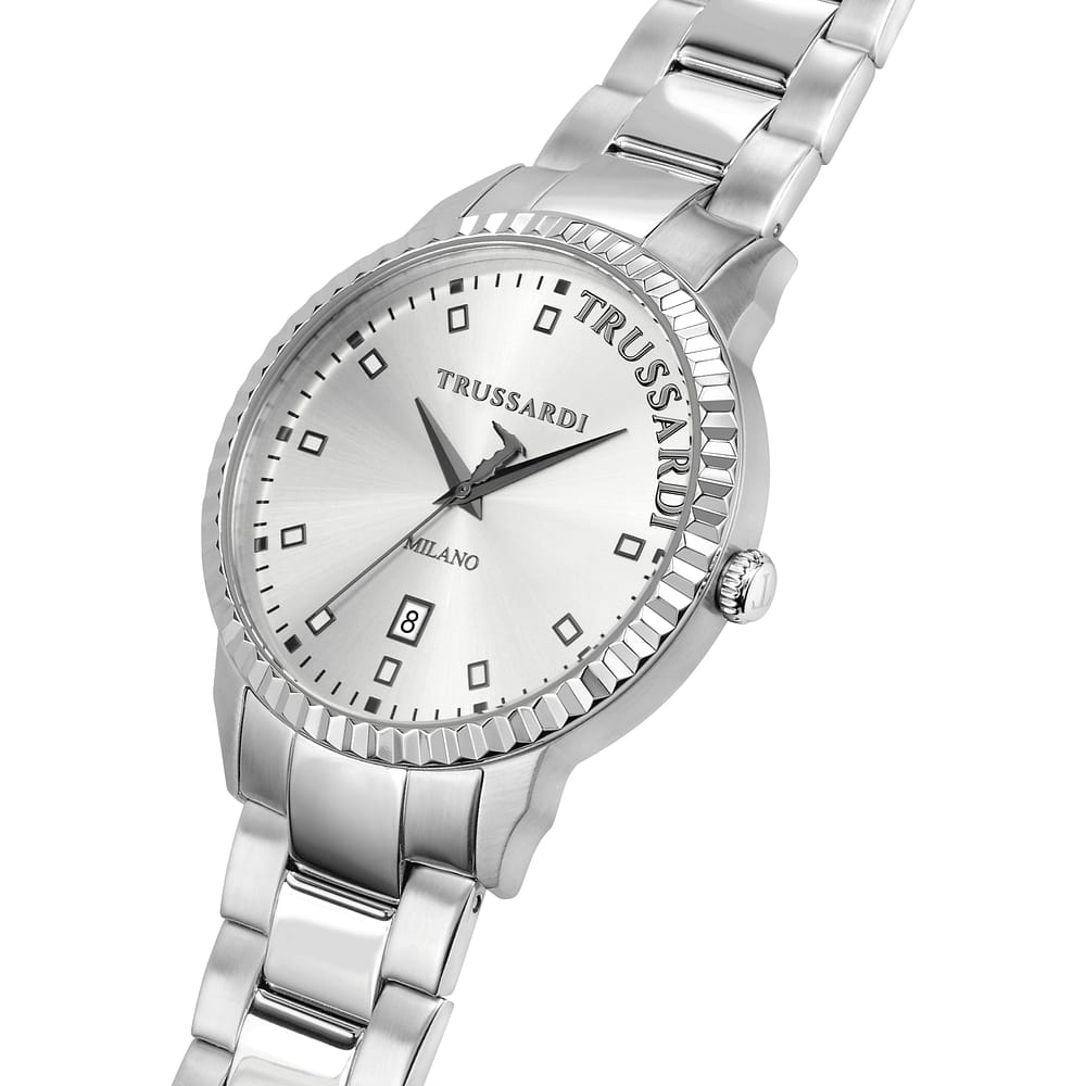 Zegarek Trussardi T-Bent R2453141004 to elegancki czasomierz męski, który łączy w sobie włoską klasykę i nowoczesny minimalizm. Wykonany ze stali nierdzewnej, zachwyca srebrną tarczą z subtelnymi indeksami i funkcją datownika. Bransoleta ze stali szlachetnej w połączeniu z solidnym zapięciem motylkowym zapewnia komfort i trwałość. Model jest odporny na zachlapania i objęty 2-letnią gwarancją producenta.