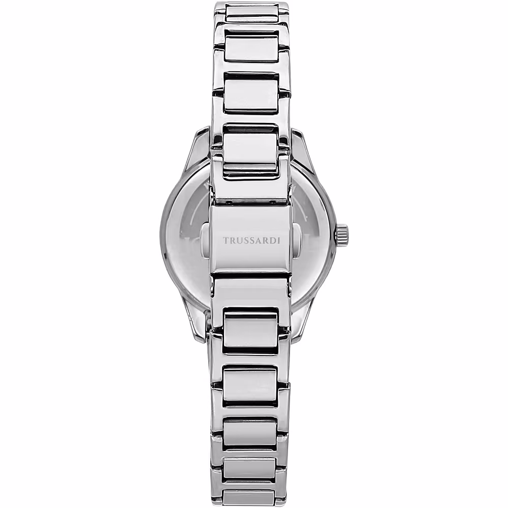 Zegarek Trussardi Mod. R2453151502 z kolekcji T-Sky to elegancki damski model „Only Time”, który łączy subtelność i nowoczesny styl. Srebrna koperta ze stali nierdzewnej o średnicy 30 mm i delikatna bransoleta tworzą harmonijną całość, idealną zarówno do codziennych, jak i bardziej formalnych stylizacji. Biała tarcza z logo marki podkreśla minimalistyczny charakter zegarka.