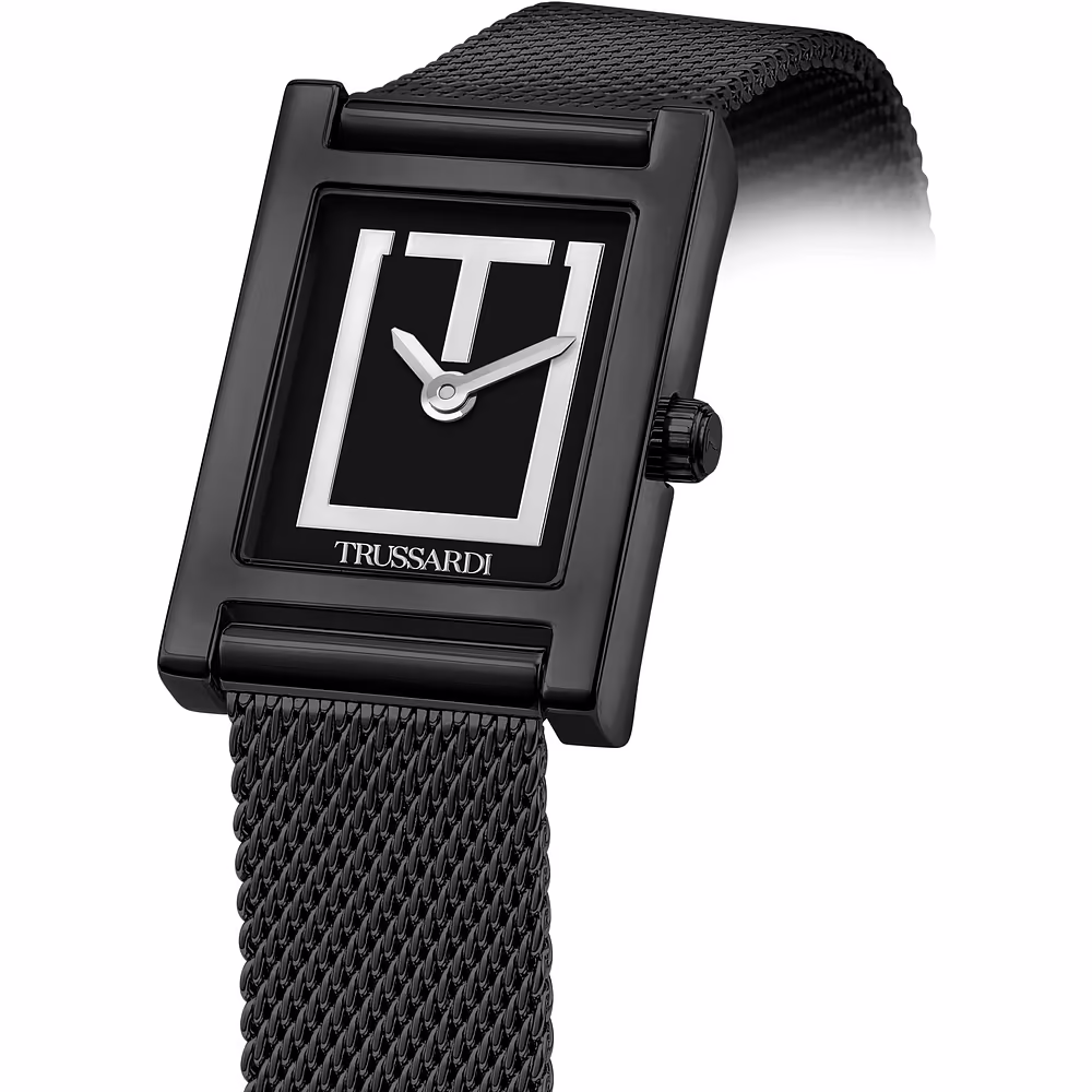 • Koperta: Stal nierdzewna z powłoką czarnego PVD, prostokątna, wymiary 24 × 35 mm, grubość 6,2 mm