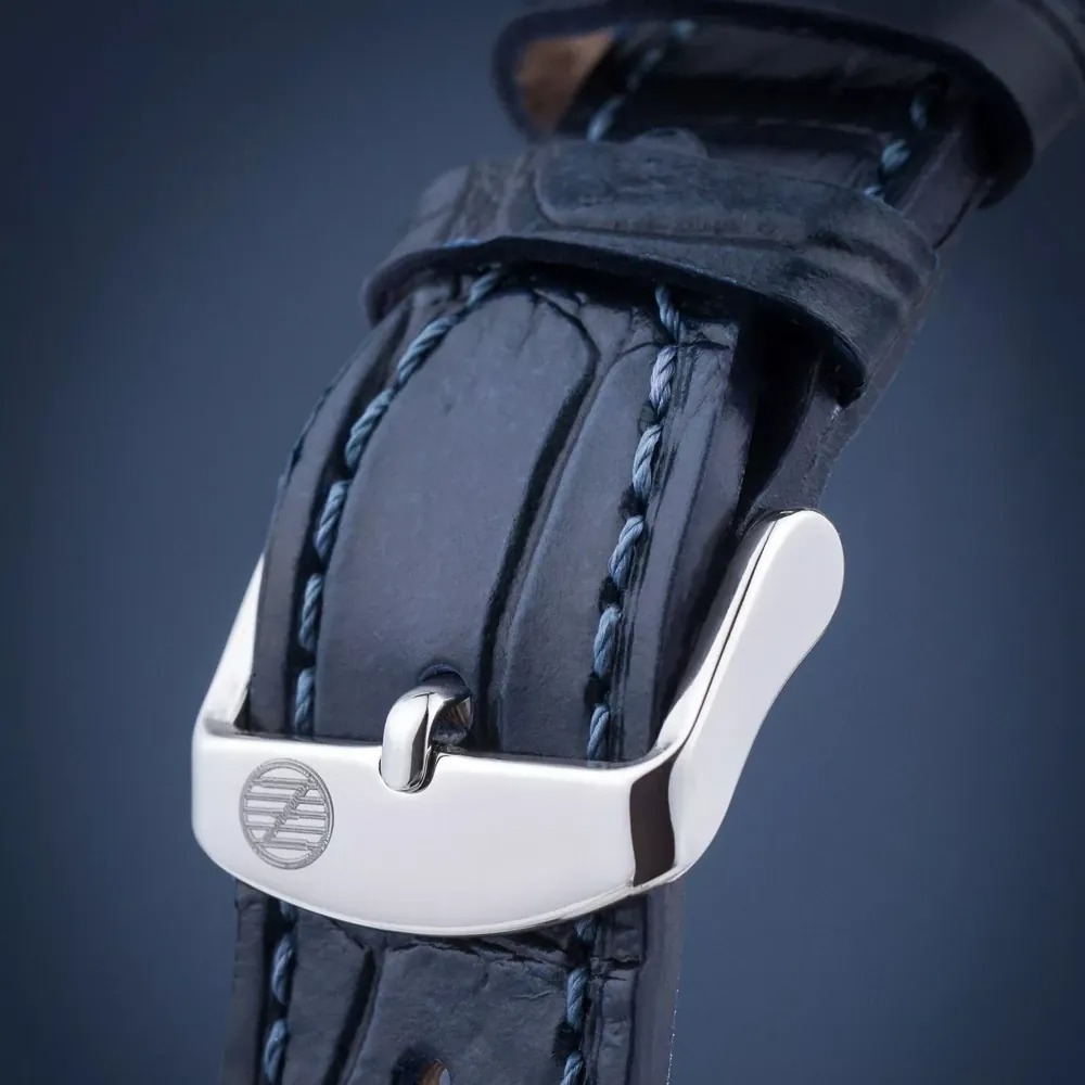 •  Pasek/Bransoleta: skórzany, granatowy (szer. między uszami 20–22 mm w zależności od źródła)